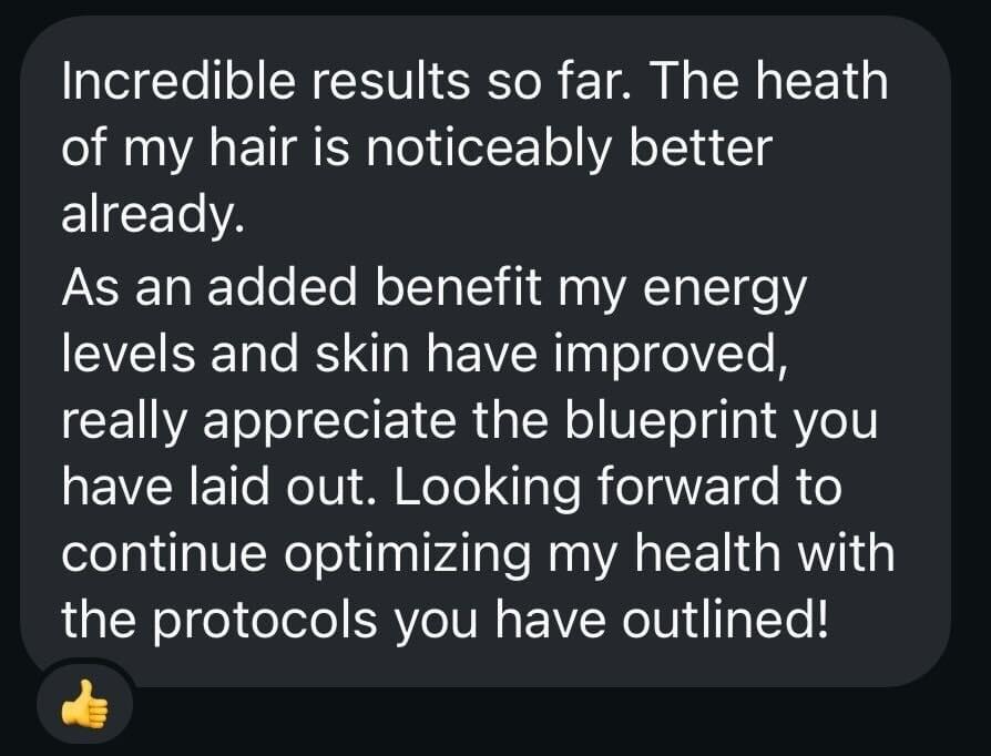 • Our Proven To Work Guide on the 4 Root Causes of Hair Loss and tips for how to deal with each cause to start improving hair quality as fast as possible (science-based and tested on hundreds of satisfied clients)