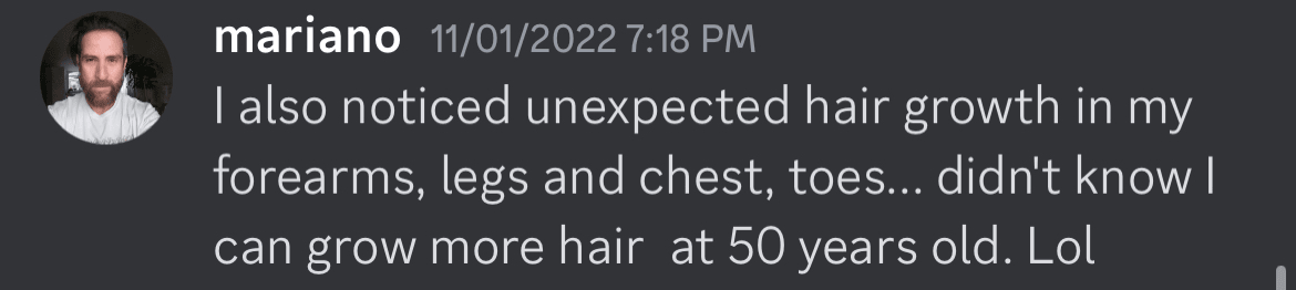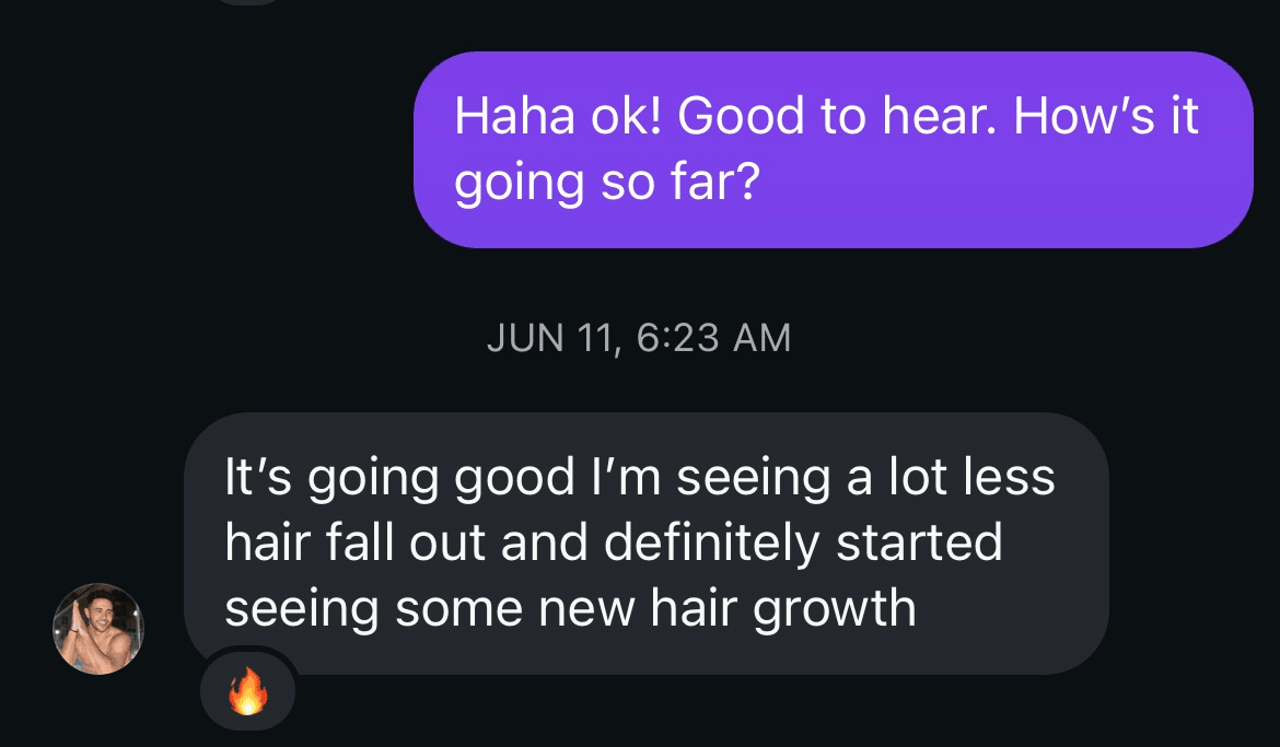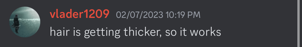 I’m starting to see my bald patch getting thicker, getting better coverage. I’m very pleased with that