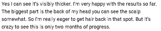 I noticed that my hair got more visibly thicker, you could see a lot of scalp before. I am already seeing some noticeable results